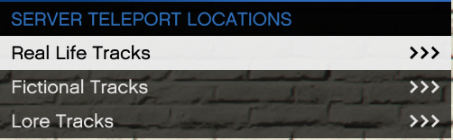 | Real Life Tracks | Fictional Tracks | Lore Tracks |